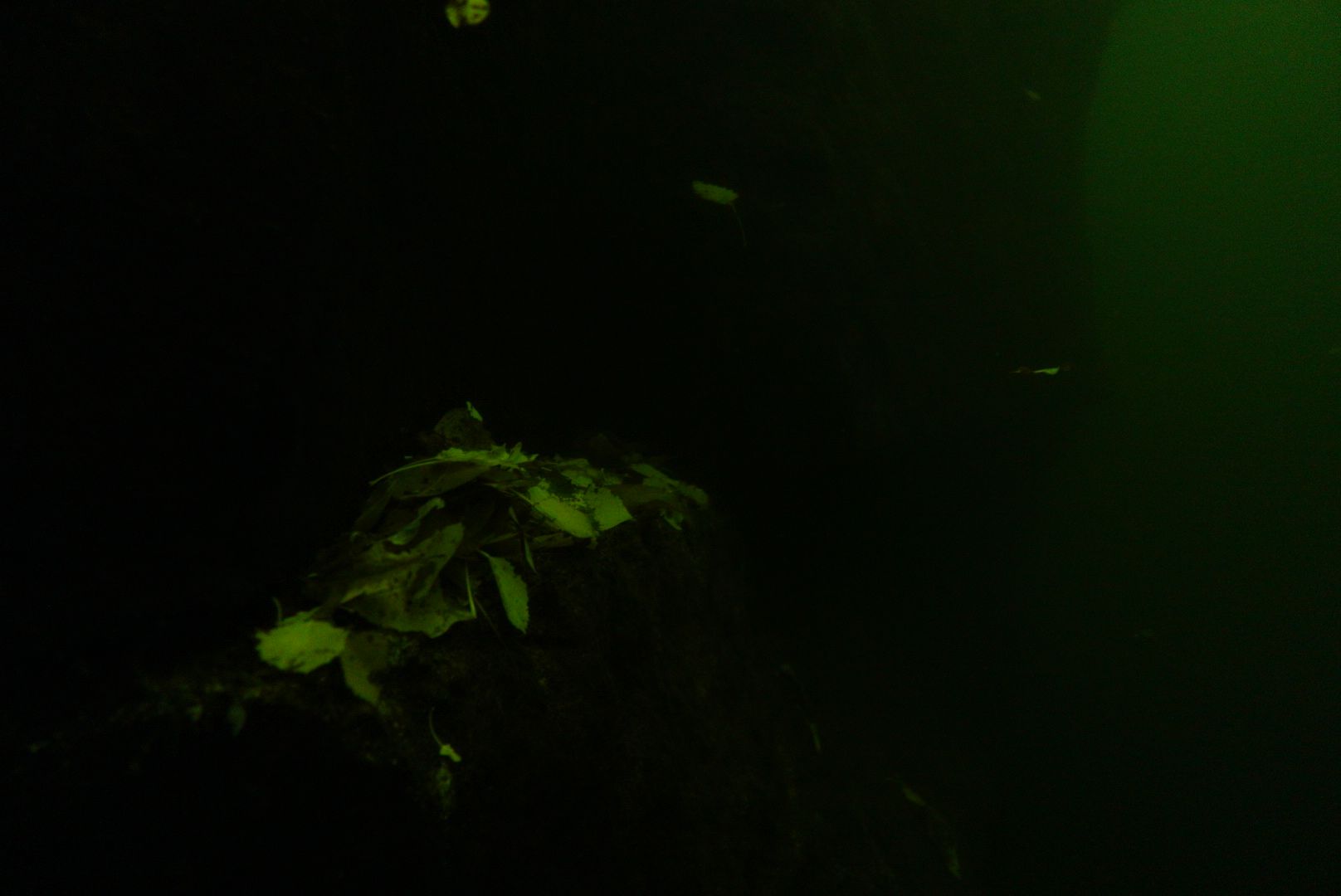 Auch bei Licht waren Objekte in einer Entfernung von mehr als 50 cm nicht mehr auszumachen. Ab 5 m Tiefe war es auch schon stockdunkel. Das Licht der nach unten leuchtenden Lampe war nicht zu sehen! (knapp 1m Entfernung zur Maske)