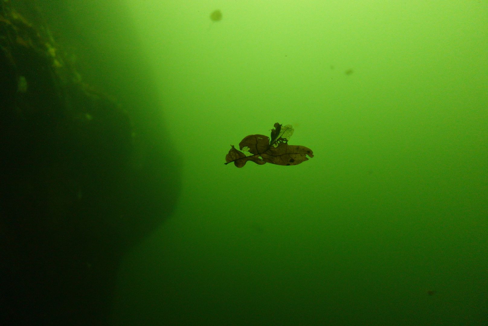 Die meisten Fische wechseln bereits in die Winterruhe und die für sie im smaragdgrünen Wasser schwebenden Blätter, wirkten wie prähistorische Einschlüsse im baltischen Bernstein. Sie verliehen der düsteren Szene einen melancholischen Einschlag.