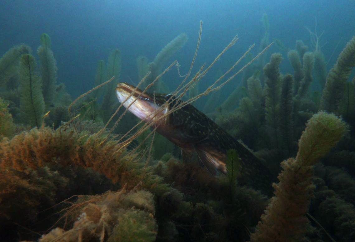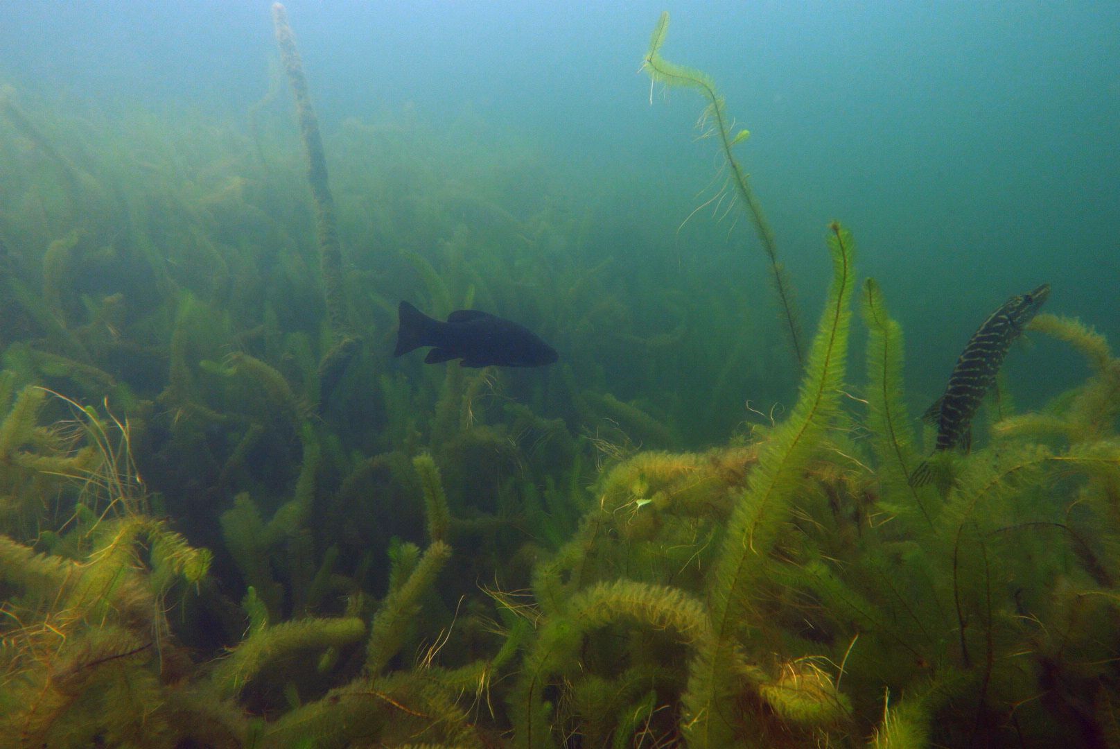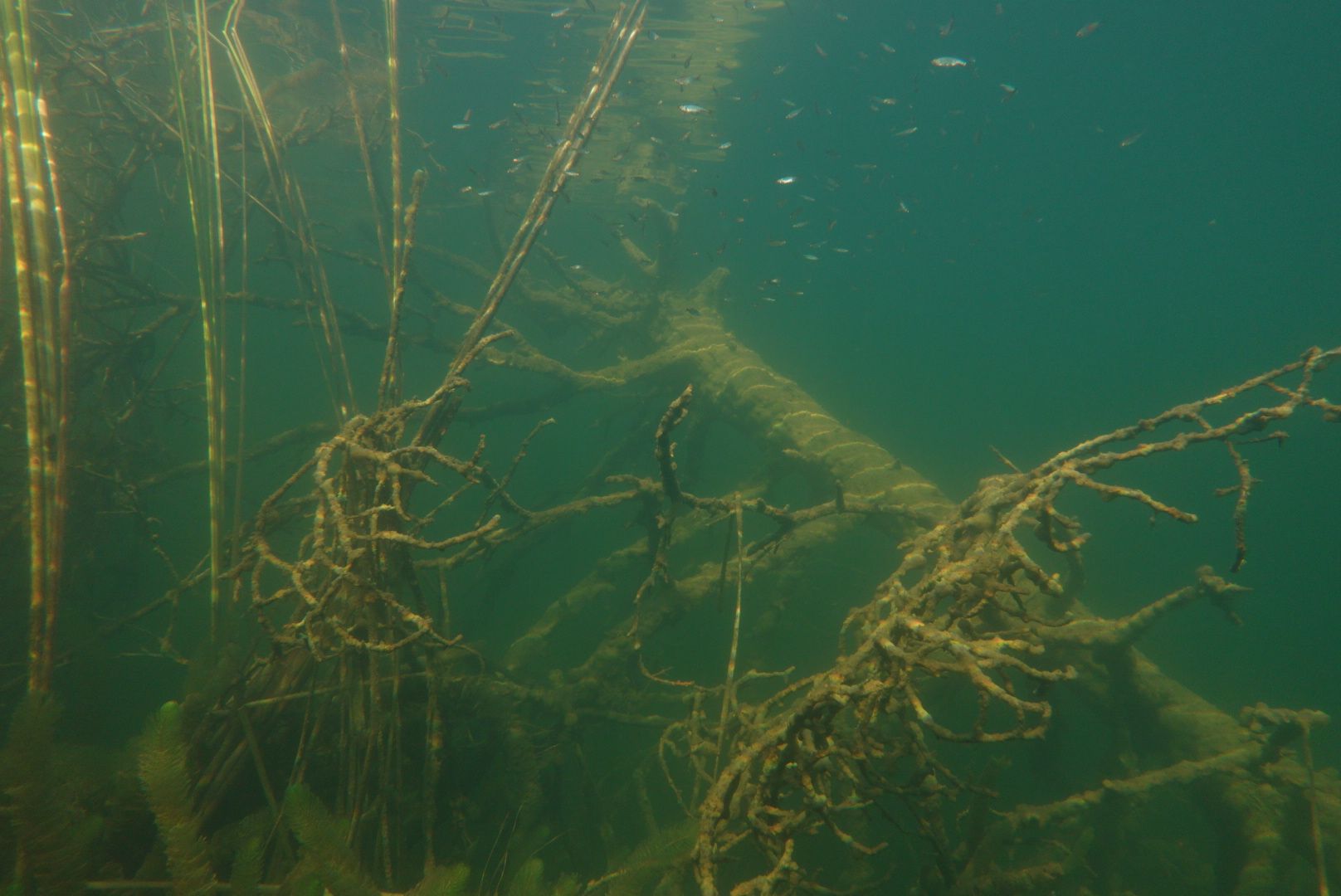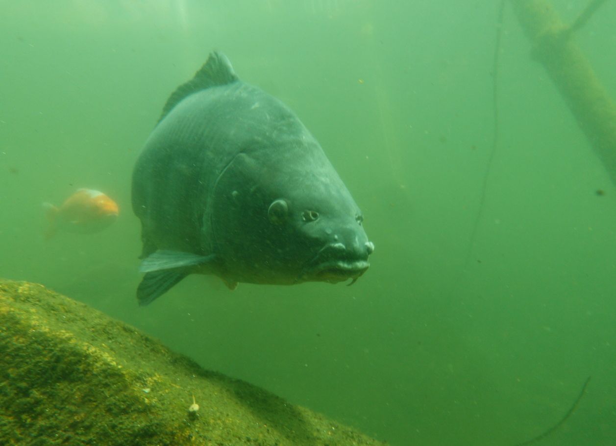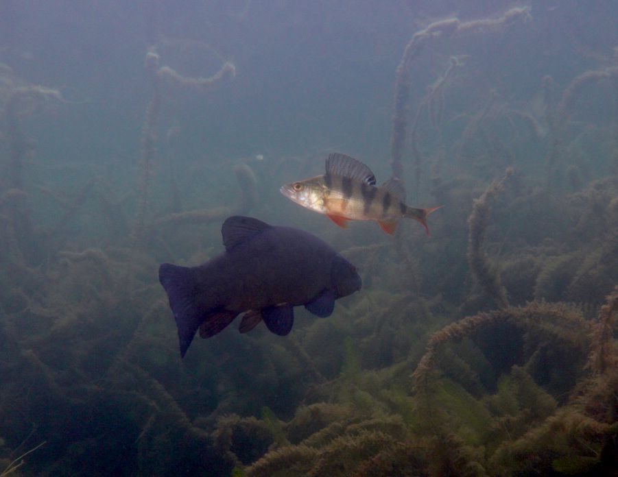 Alle 5m ein Hecht, zwei Karpfen pflügen den Boden, Weißfisch wohin man sieht und zwei Begegnungen mit Schleien. Leider hatten diese schmucken Fische eine recht hohe Fluchtdistanz von 2m beim Ausatmen.