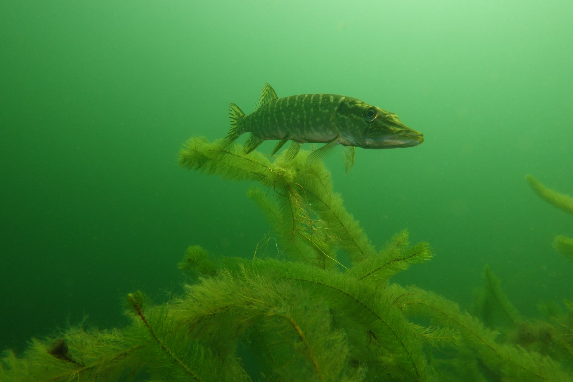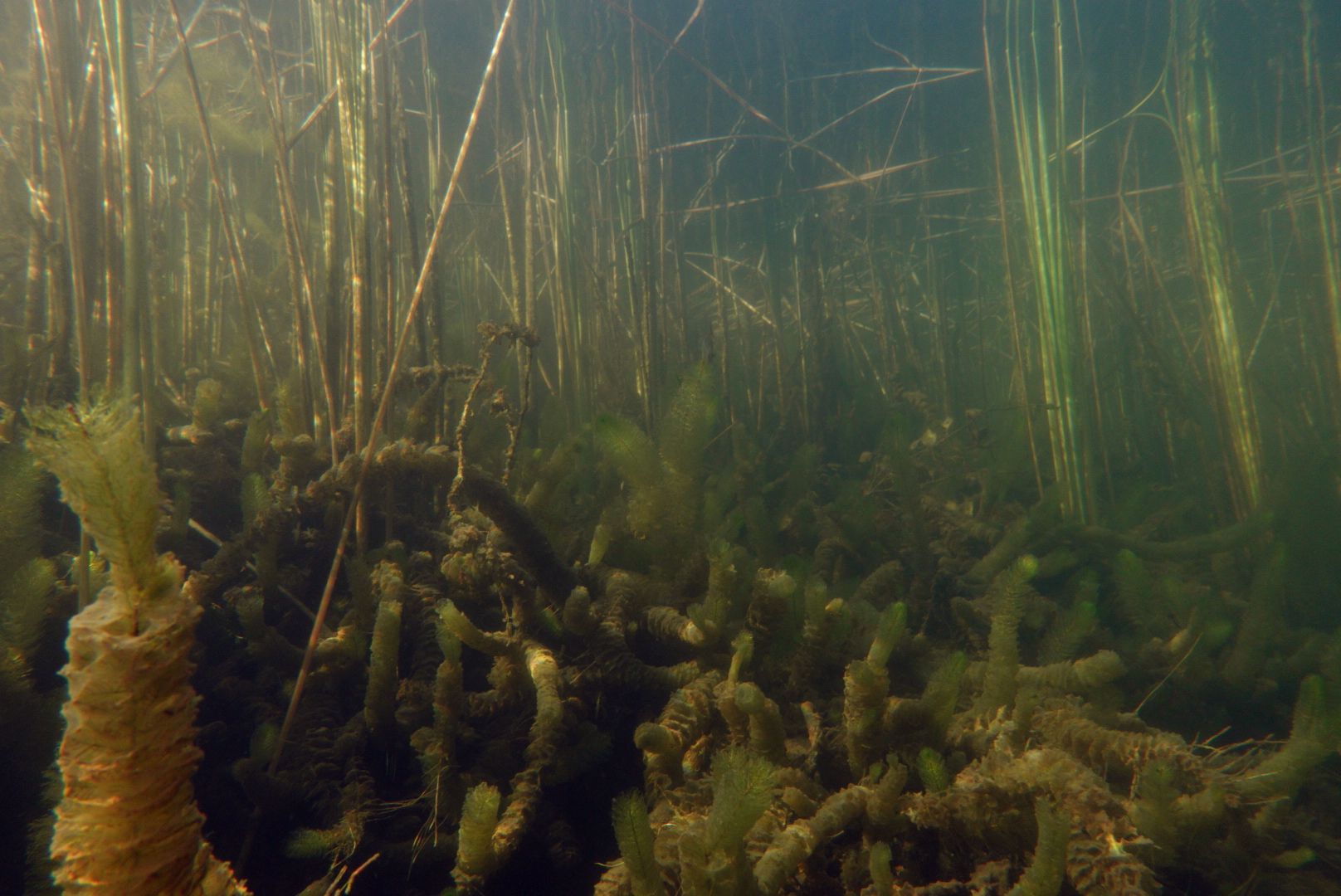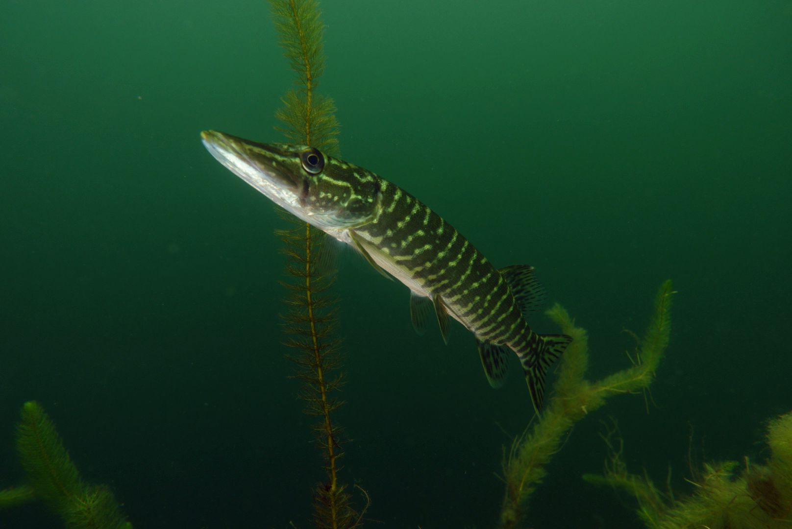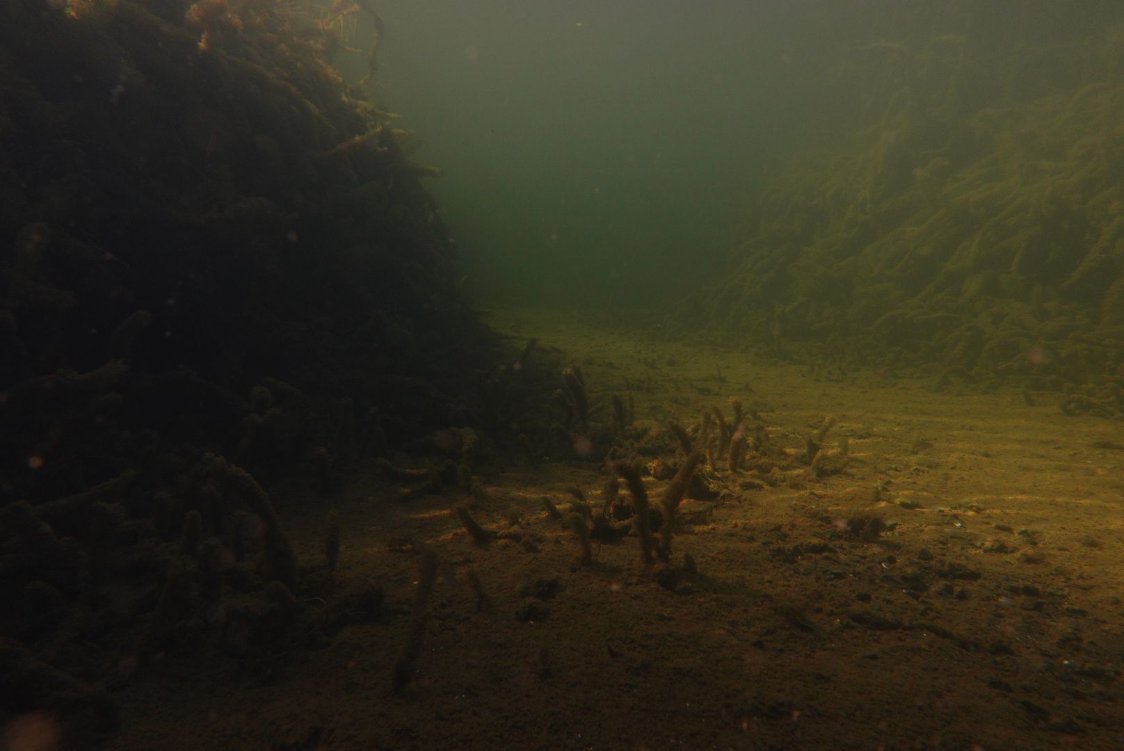 Alle 5m ein Hecht, zwei Karpfen pflügen den Boden, Weißfisch wohin man sieht und zwei Begegnungen mit Schleien. Leider hatten diese schmucken Fische eine recht hohe Fluchtdistanz von 2m beim Ausatmen.