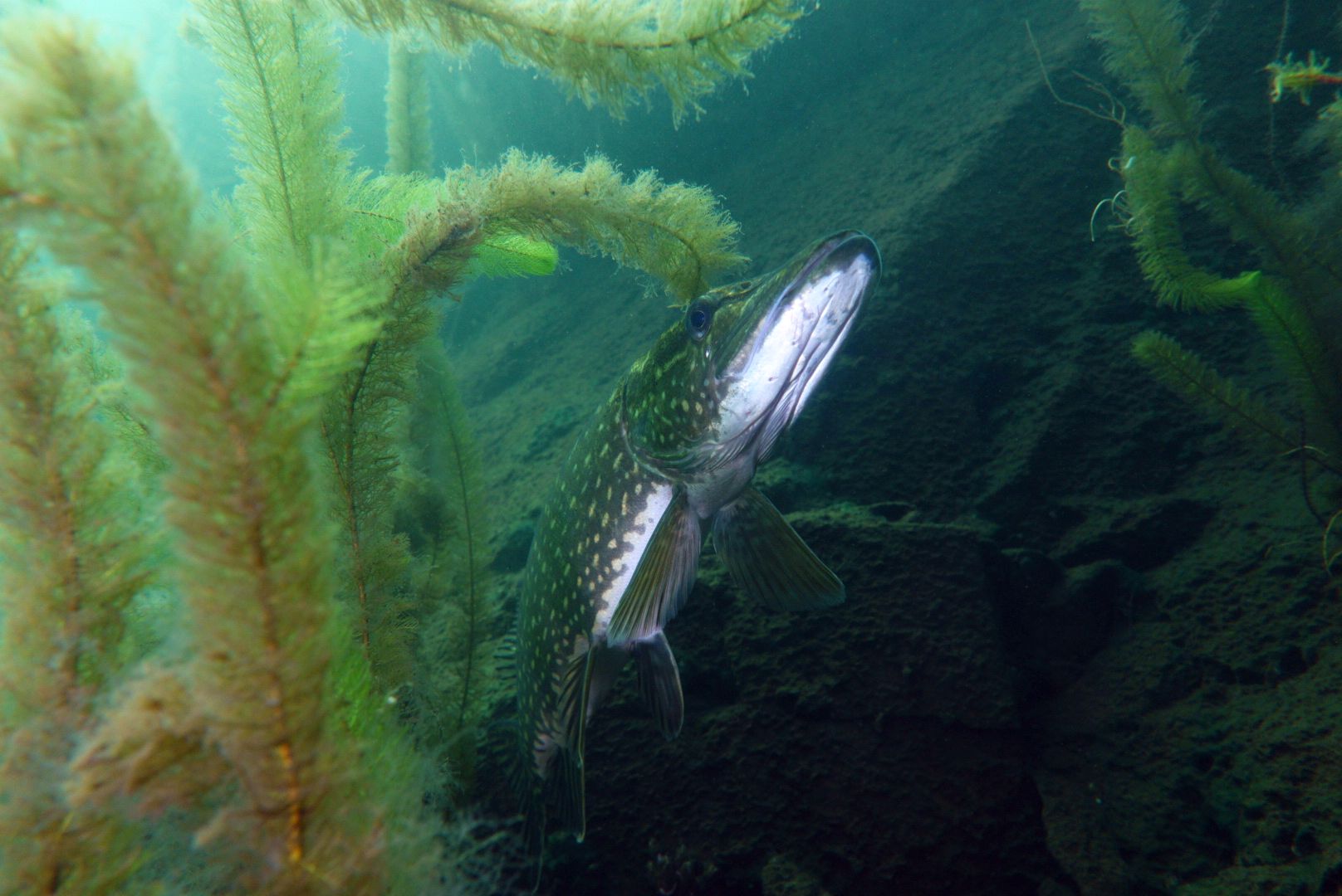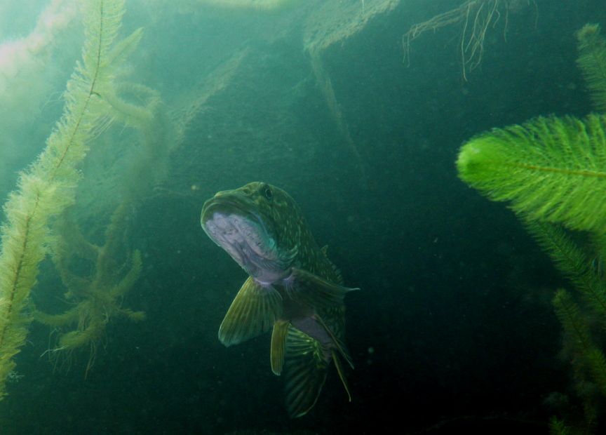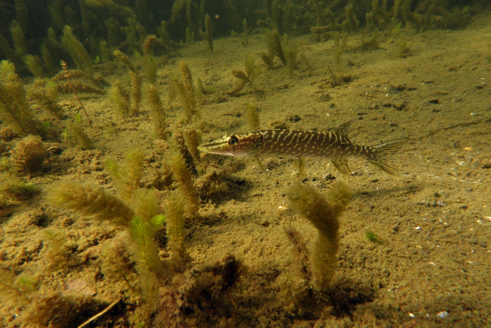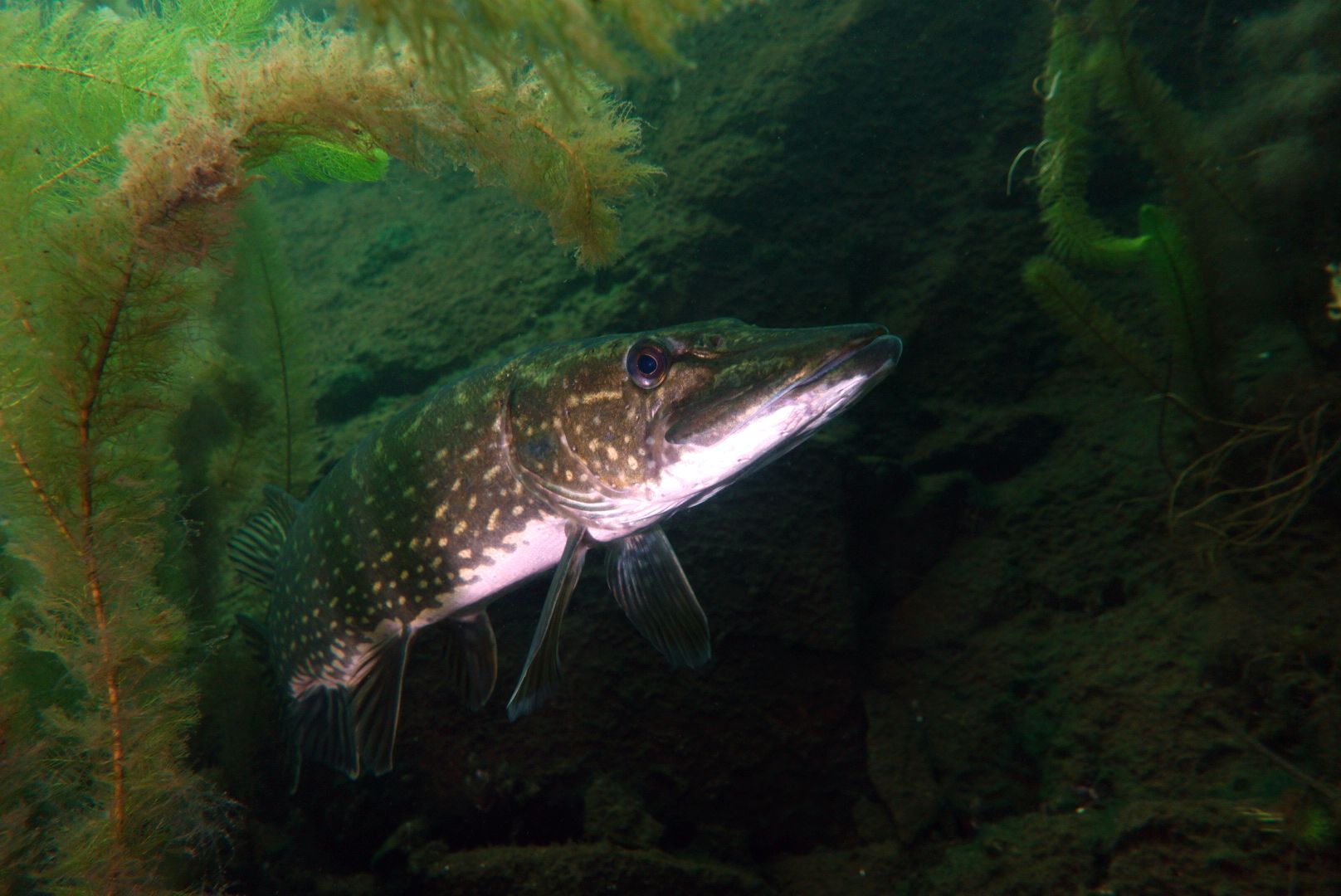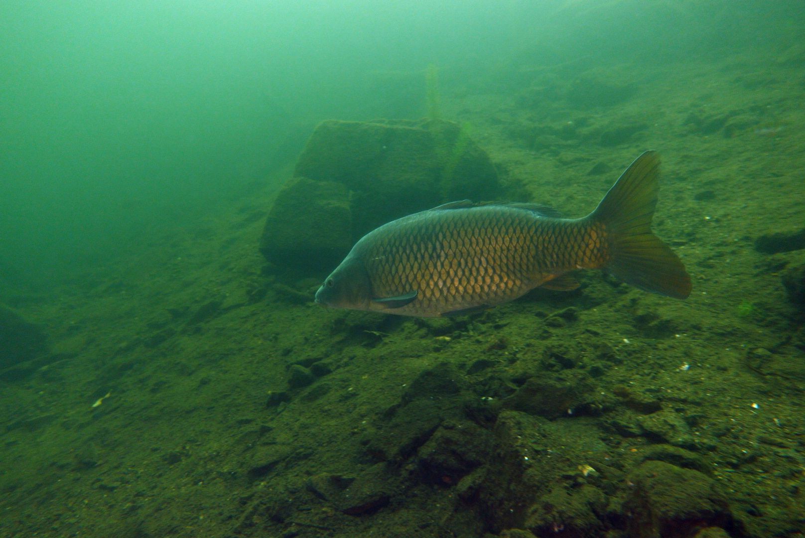 Ansonsten wenig überraschendes - ein fetter Karpfen, zwei kuschelnde Karpfen, Wassermilben, mehrere Hechte und viel Schwarmfisch.
