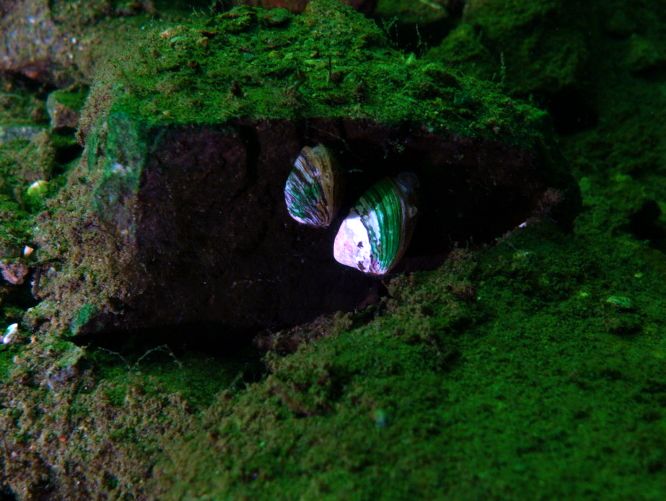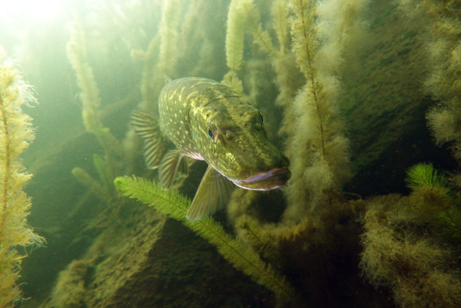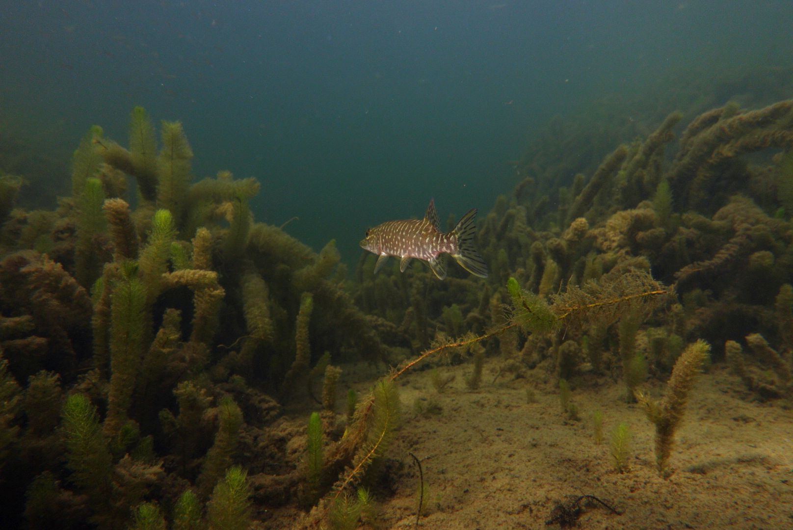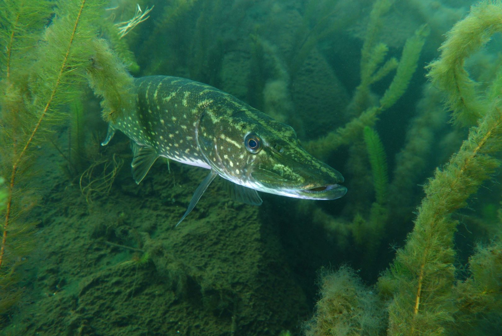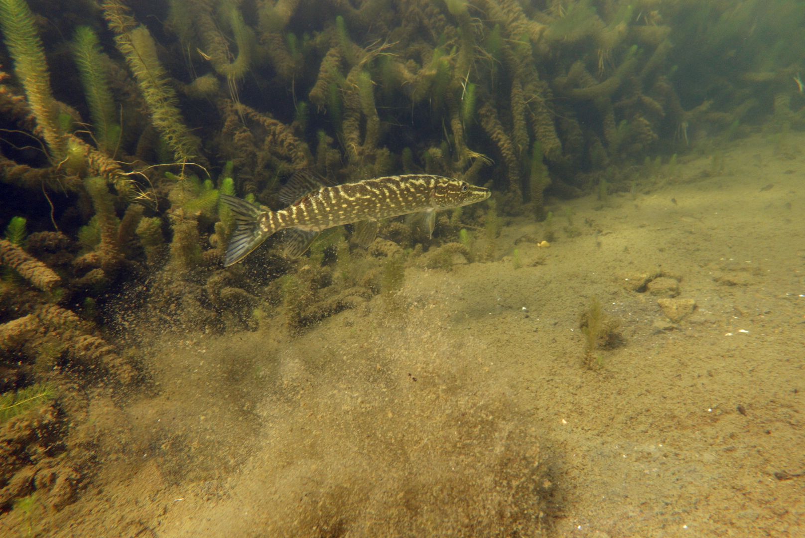 Ansonsten wenig überraschendes - ein fetter Karpfen, zwei kuschelnde Karpfen, Wassermilben, mehrere Hechte und viel Schwarmfisch.
