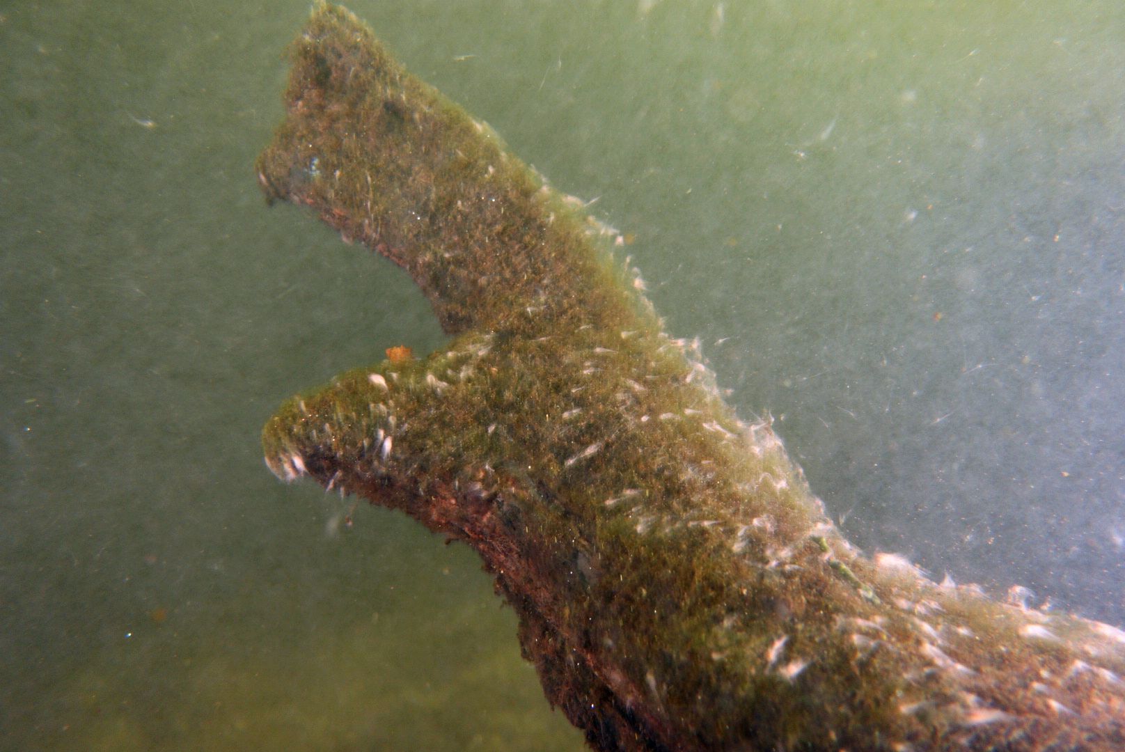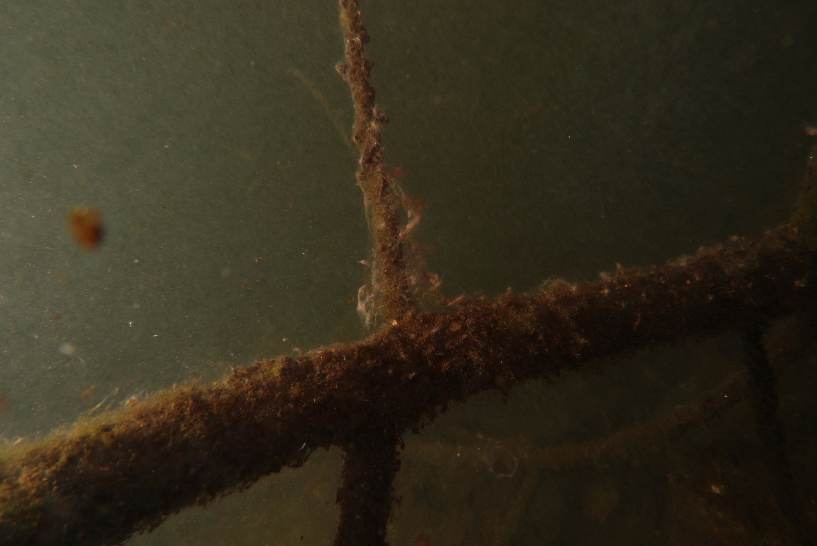 Ich hatte mir die Wartezeit verkürzt und per Kleinanzeigen günstig ein Paar INON S-2000 am Floatarm ergattert. Die beherrschen S-TTL. So erhoffte ich mir ausgewogenes Blitzlicht und weniger backscatter. Naja .. da ist definitiv noch Luft nach oben. Die Bedingungen waren wirklich krass, ich habe nicht mal die Mühlberg gefunden :(