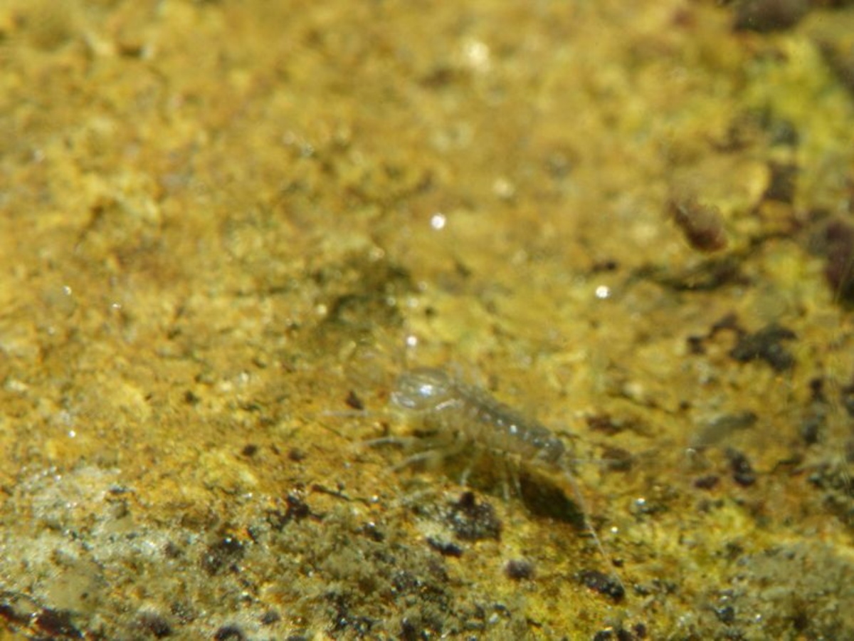 Minimalziel war eine Wasserassel abzulichten. Bei meinen Versuchen wird deutlich, dass die Hauptschwierigkeit eine ordentliche Positionierung der Kamera (immer ist was im Weg) und der Blitze (besser nur einer) ist. Natürlich ist auch das Fokussieren problematisch.