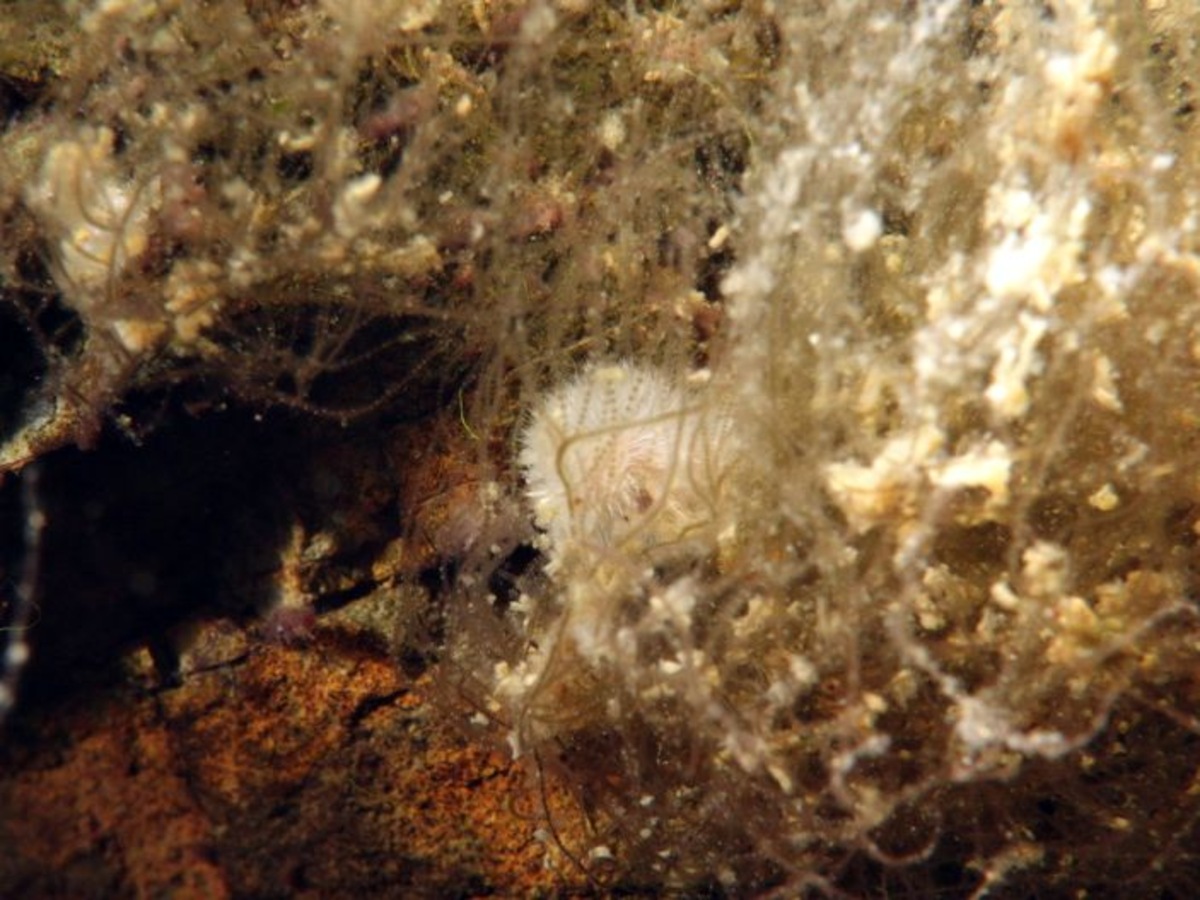 Aber trotzdem reichte es auch, um im Nachgang neues zu entdecken: ich tippe mal auf einen weiblichen Hüpferling, auch wenn keine Fühler zu sehen sind. Den Süßwasserpolyp habe ich ebenso wieder erst auf dem Foto entdeckt. Den „Schwamm“ konnte ich auch nur nachträglich aufgrund der einzelnen Brutknospen auf dem Bild identifizieren. Bisher hatte ich so was immer für „Ausblühungen“ des Gesteins gehalten :(