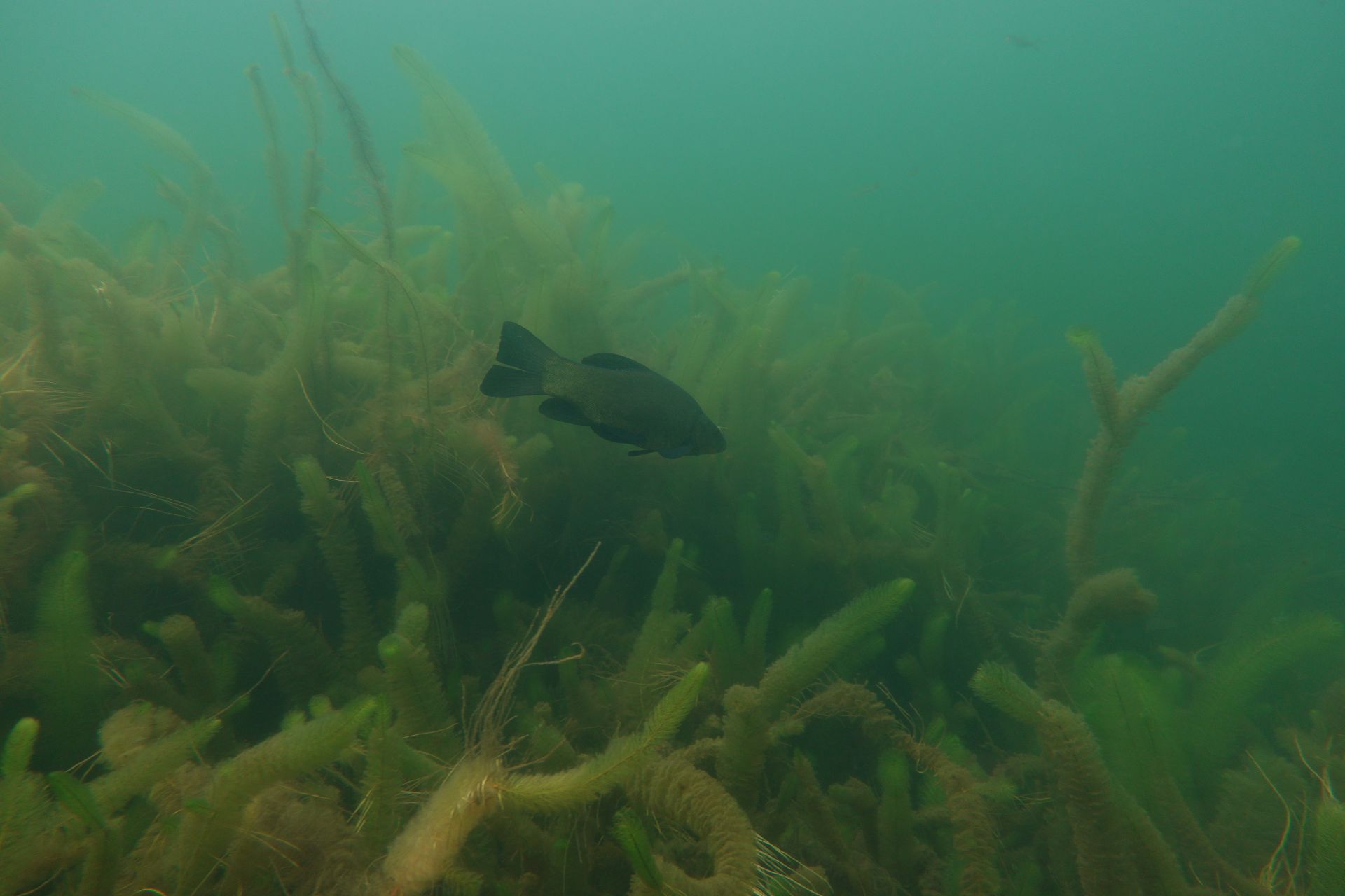 Alle 5m ein Hecht, zwei Karpfen pflügen den Boden, Weißfisch wohin man sieht und zwei Begegnungen mit Schleien. Leider hatten diese schmucken Fische eine recht hohe Fluchtdistanz von 2m beim Ausatmen.