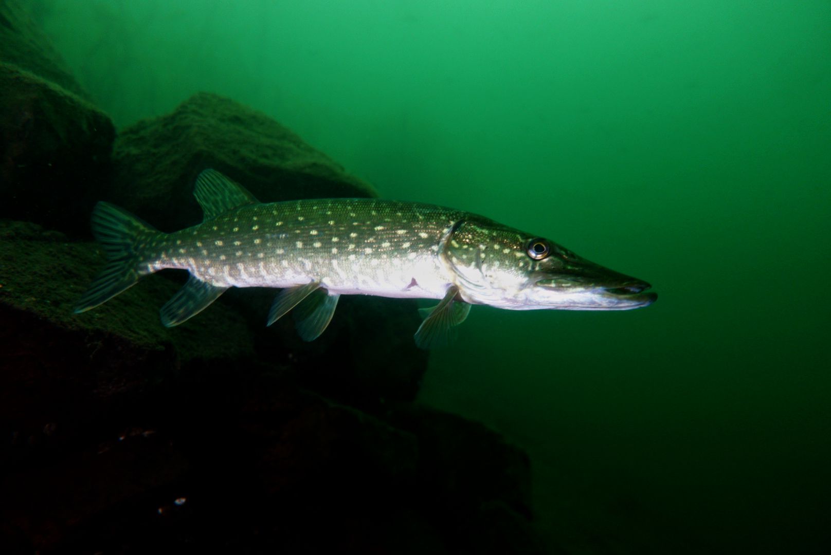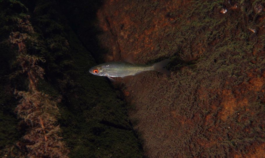 Ansonsten wenig überraschendes - ein fetter Karpfen, zwei kuschelnde Karpfen, Wassermilben, mehrere Hechte und viel Schwarmfisch.
