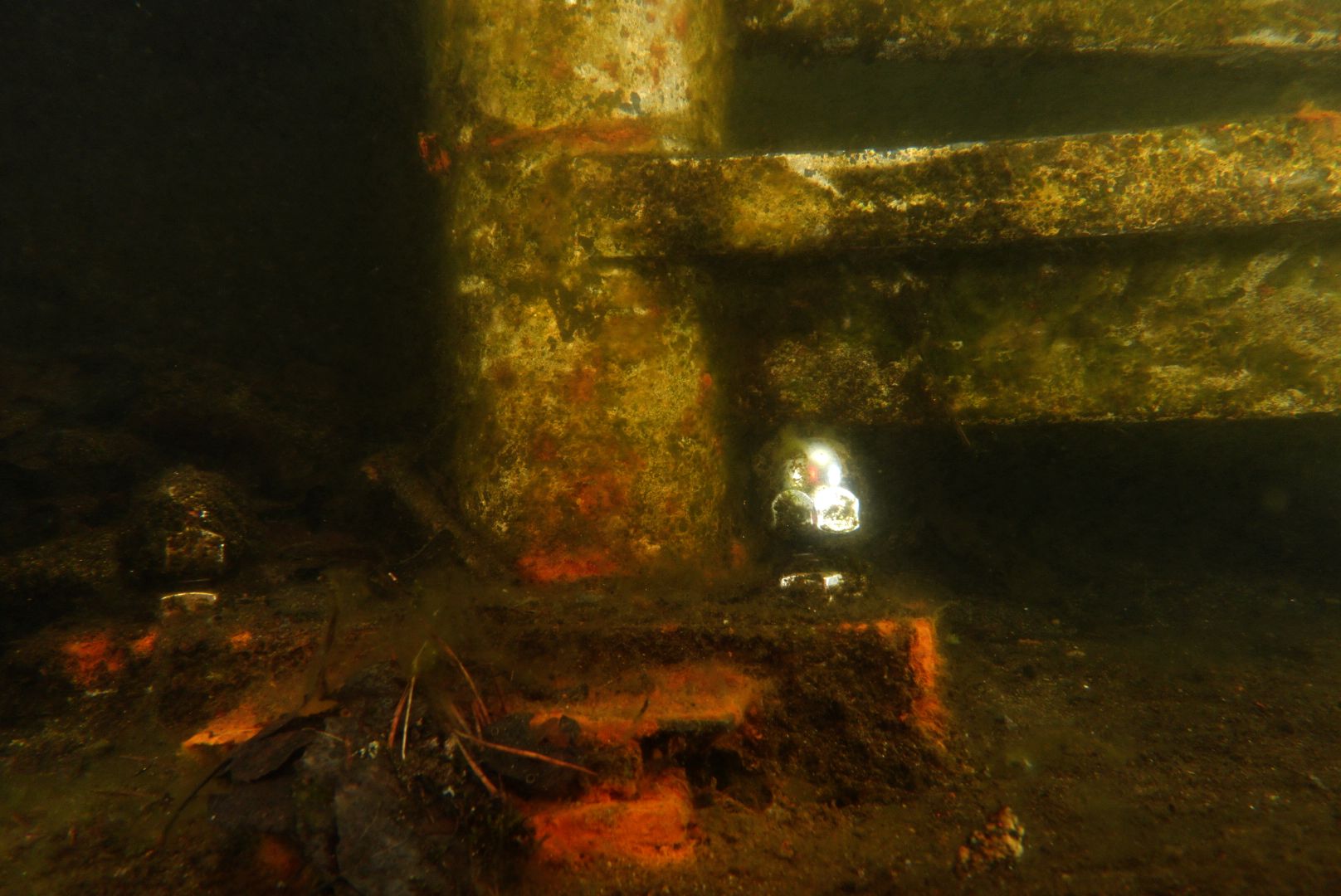 Ich hatte mir die Wartezeit verkürzt und per Kleinanzeigen günstig ein Paar INON S-2000 am Floatarm ergattert. Die beherrschen S-TTL. So erhoffte ich mir ausgewogenes Blitzlicht und weniger backscatter. Naja .. da ist definitiv noch Luft nach oben. Die Bedingungen waren wirklich krass, ich habe nicht mal die Mühlberg gefunden :(